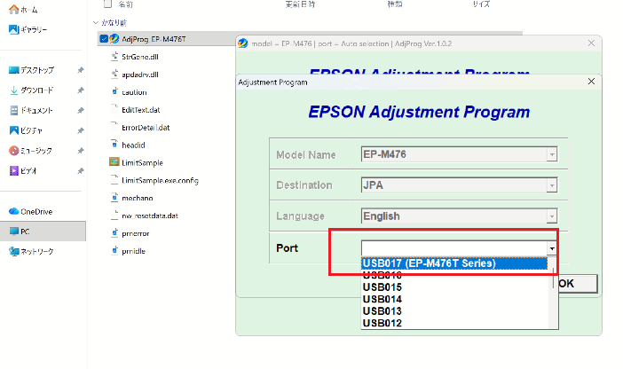 - you download, unzip open and run the file: AdjProg_EP-M476T.exe