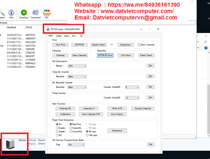 Bước 3: Reset bộ đếm bằng phần mềm Service Tool