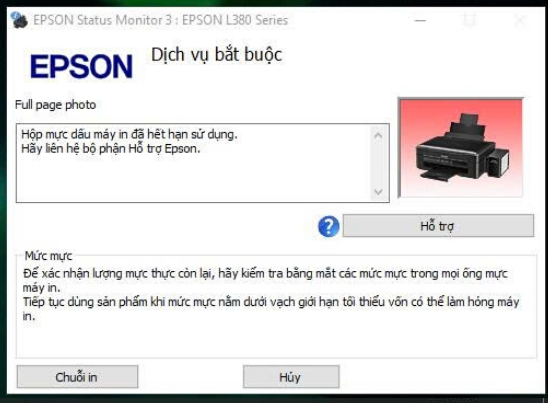 Đây là dấu hiệu yêu cầu người dùng phải reset bằng Epson L380 Adjustment Program.