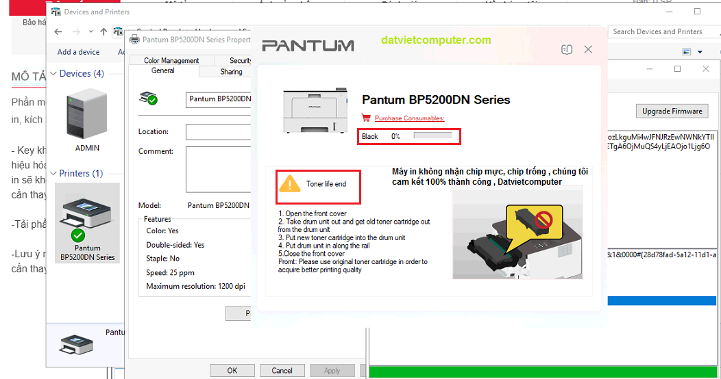 Nguyên nhân và giải pháp cho lỗi "Toner Life End (08000000)" trên máy in Pantum BP5200DN và BP5200DW